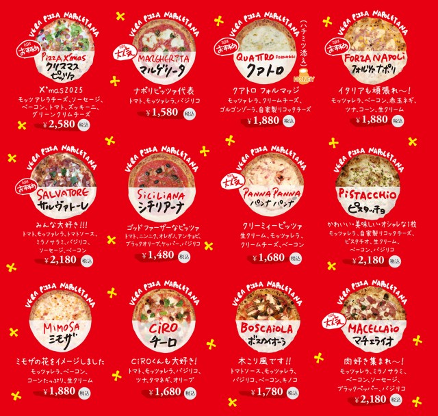 単品ピッツァは12種類限定です。2枚より注文おねがいします。